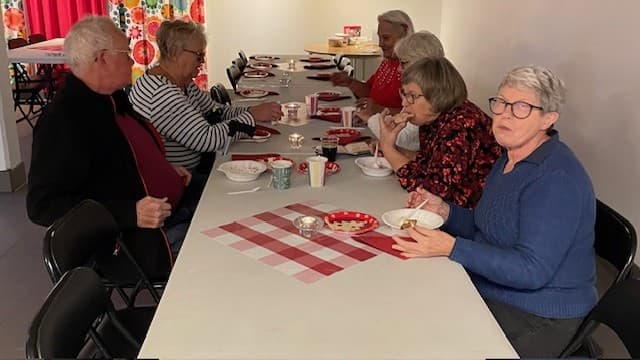 I lokalen doftade det gott av julgröt och glögg. När vi ätit gröt och skinksmörgås gick vi tillsammans för att se Tomteparaden.