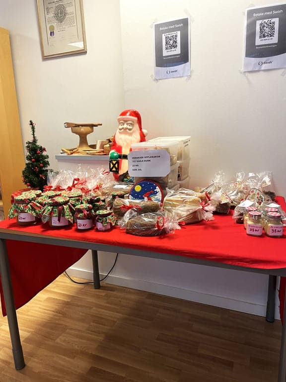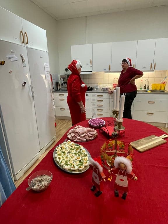 Sen kunde man plocka till sig av all den goda julmaten som trivselgruppen gjort. Gunilla gjorde Jansssons Frestelse och svampomelett,